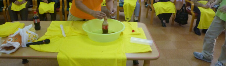 こんにちは みどりの職員の高橋と申します 今日は、文化祭を開催いたしました プログラム 1 コーラ大爆発 2 りんご爆破 3 ドミノ倒し 4 サイコロトーク ~コーラ大爆発~ コーラの中にメントスを入 […]
