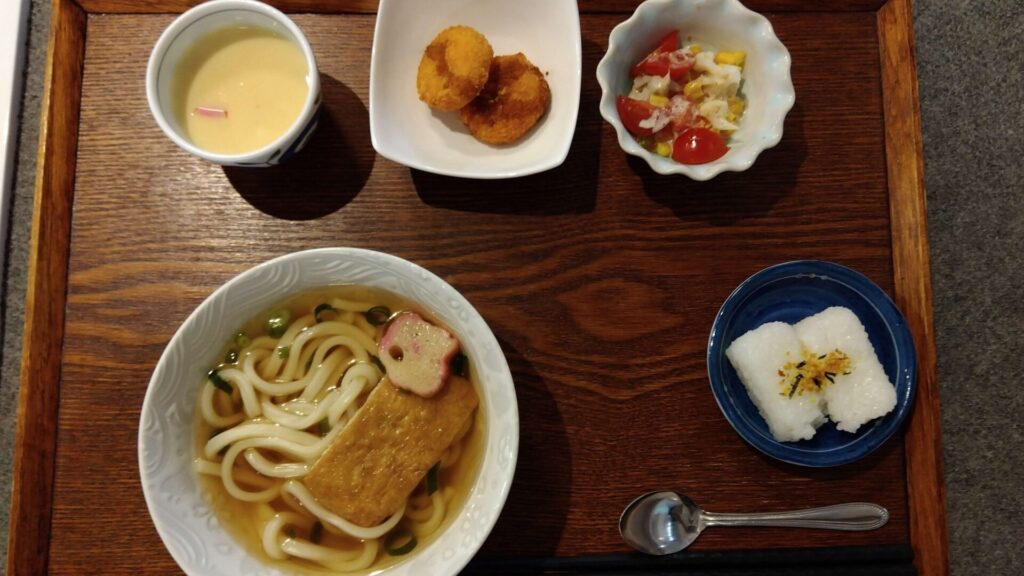 本日の麺定食は、『きつねうどん(そばにも変更可能です)』。