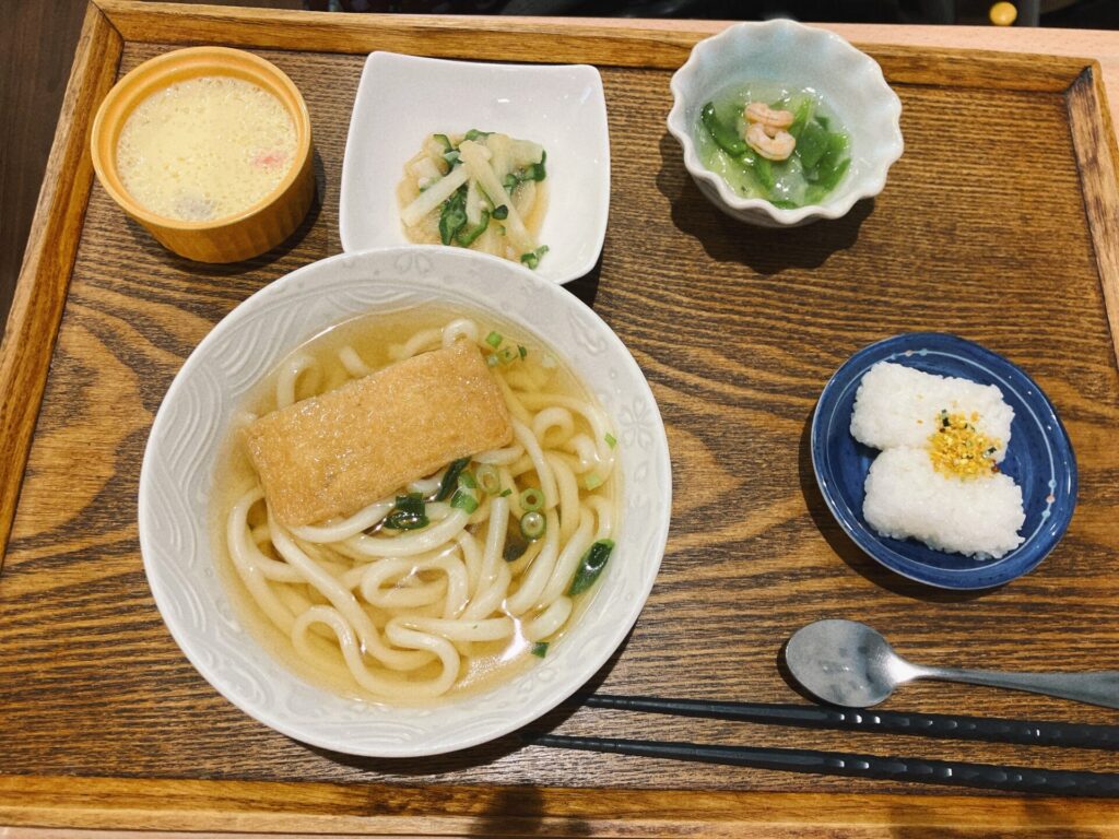 本日の麺定食は、『きつねうどん(そばにも変更可能です)』。