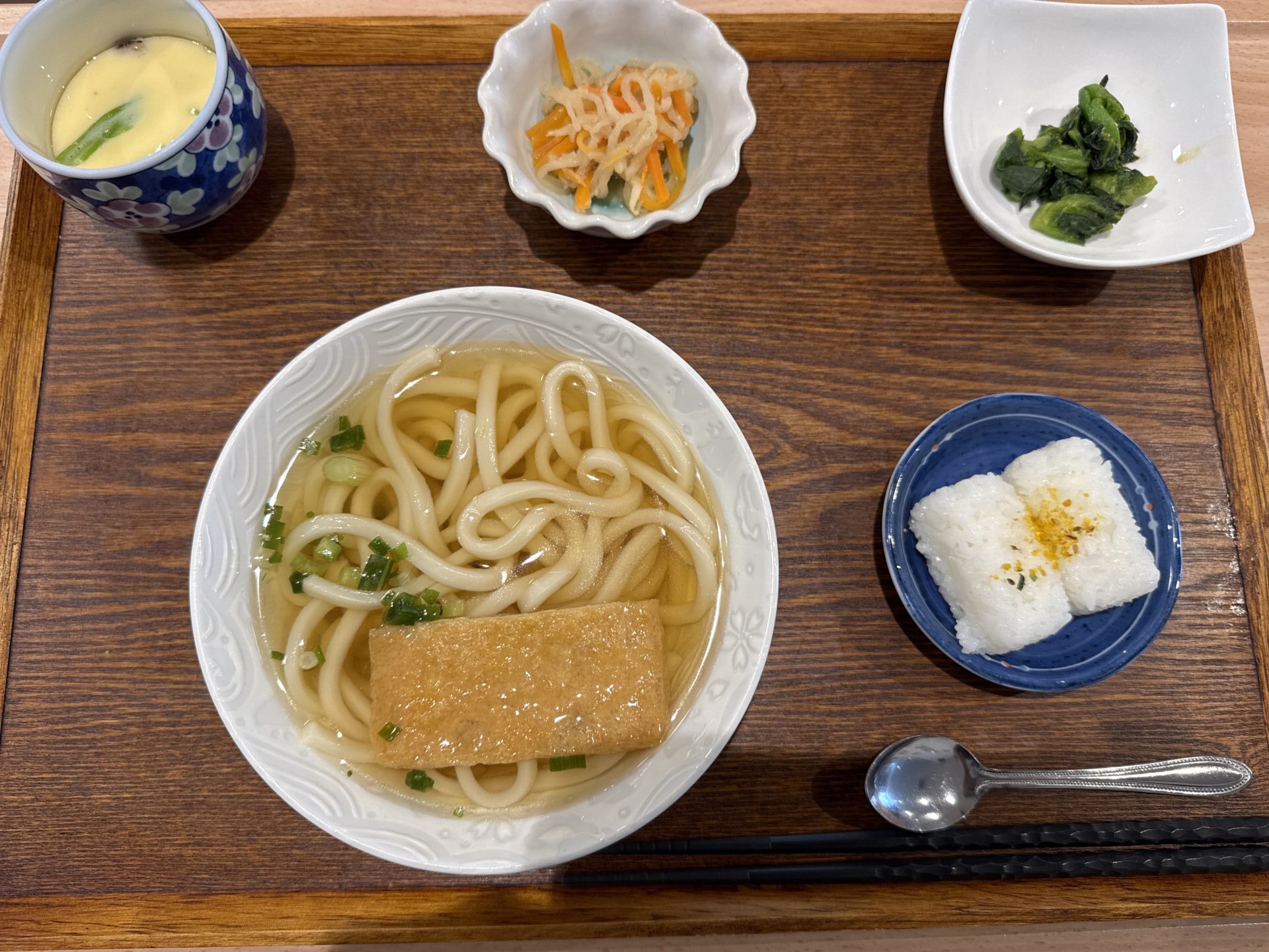 本日の麺定食は、『きつねうどん(そばにも変更可能です)』。