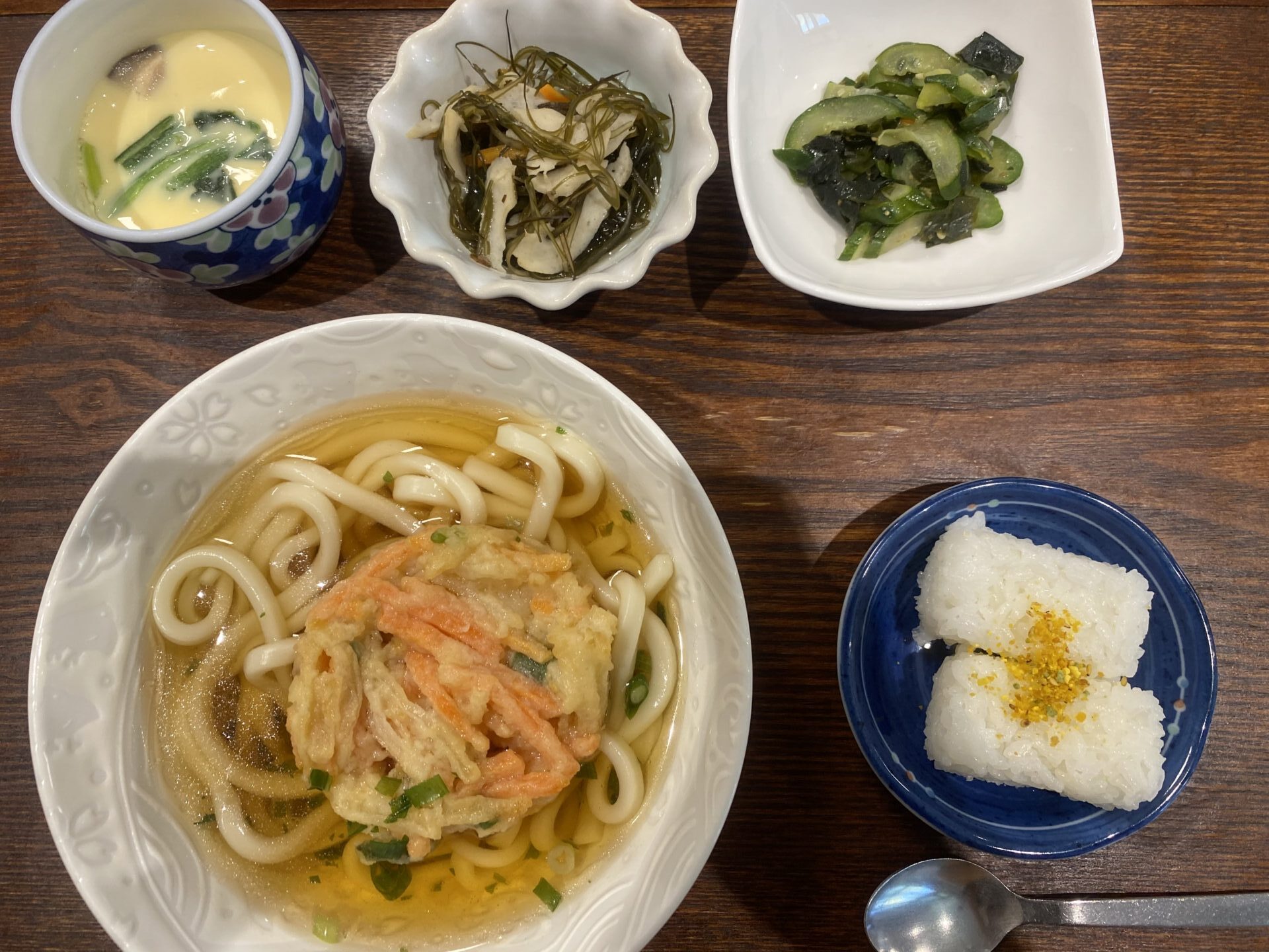 本日の麺定食は、『かき揚げうどん(そばにも変更可能です)』。
