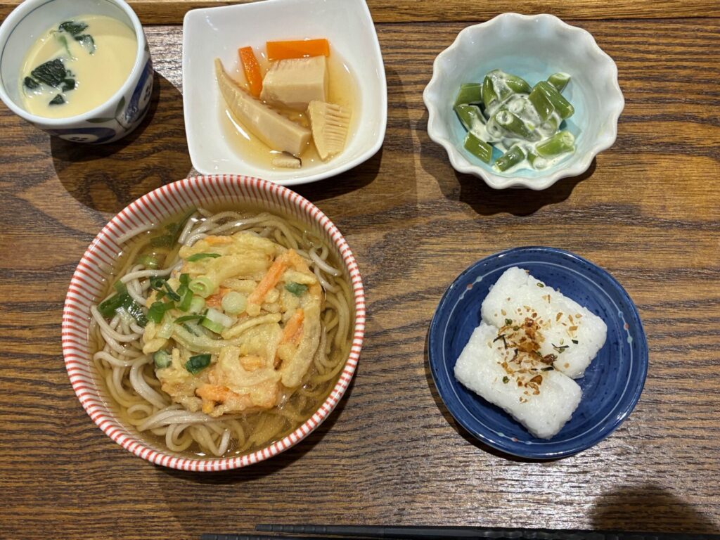 本日の麺定食は、『かき揚げうどん(そばにも変更可能です)』。
