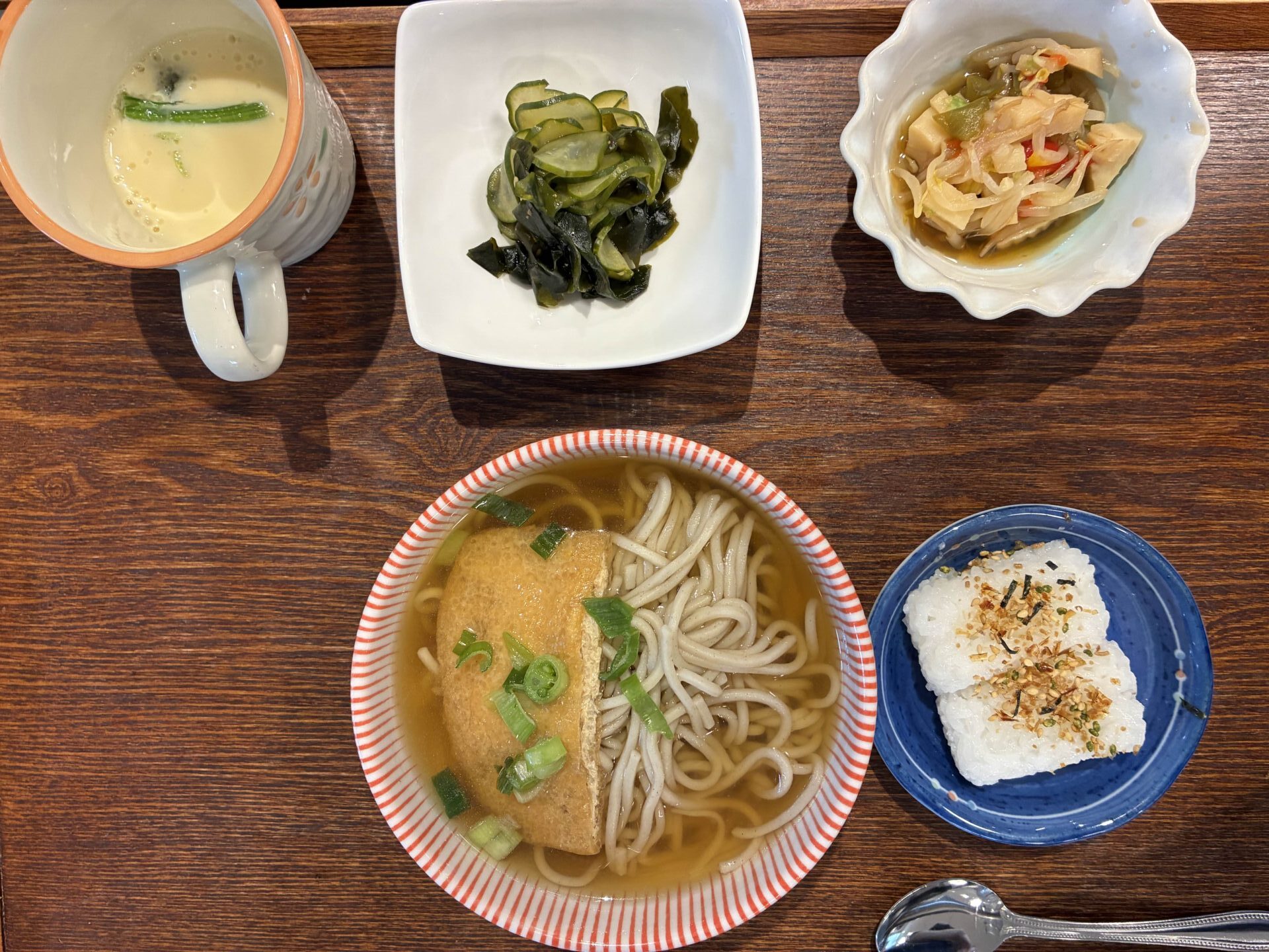本日の麺定食は、『きつねうどん(そばにも変更可能です)』。