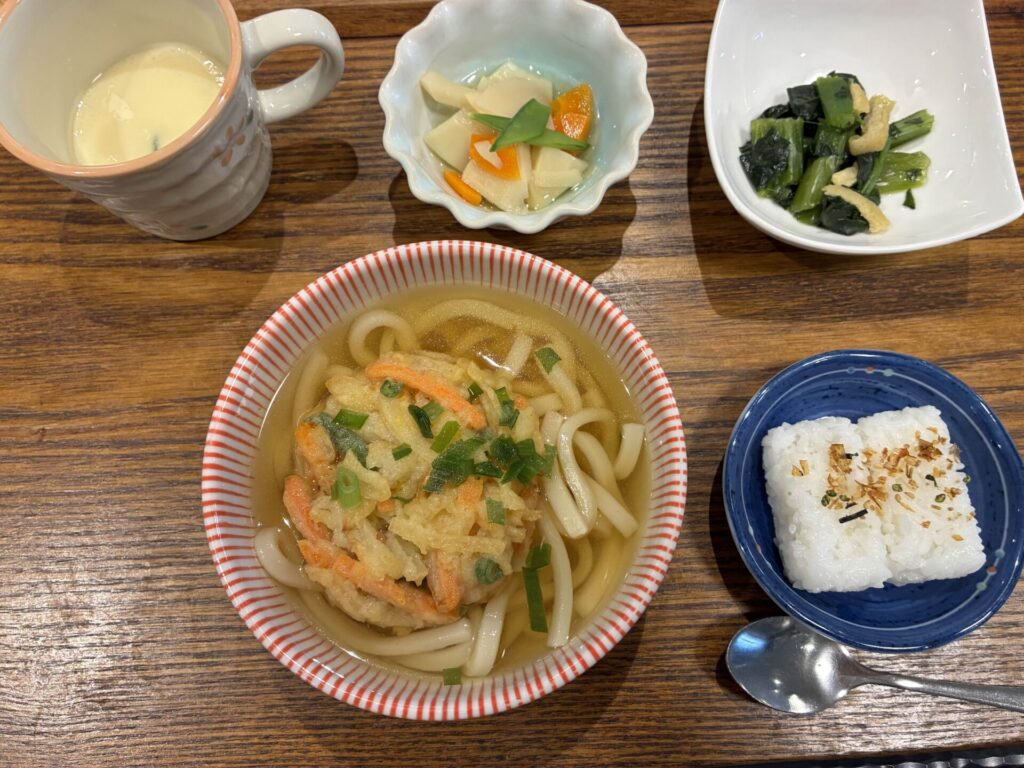 本日の麺定食は、『かき揚げうどん(そばにも変更可能です)』。