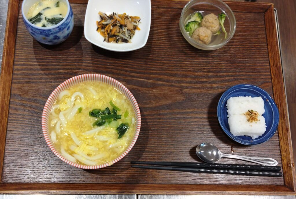 本日の麺定食は、『玉子とじうどん(そばにも変更可能です)』。