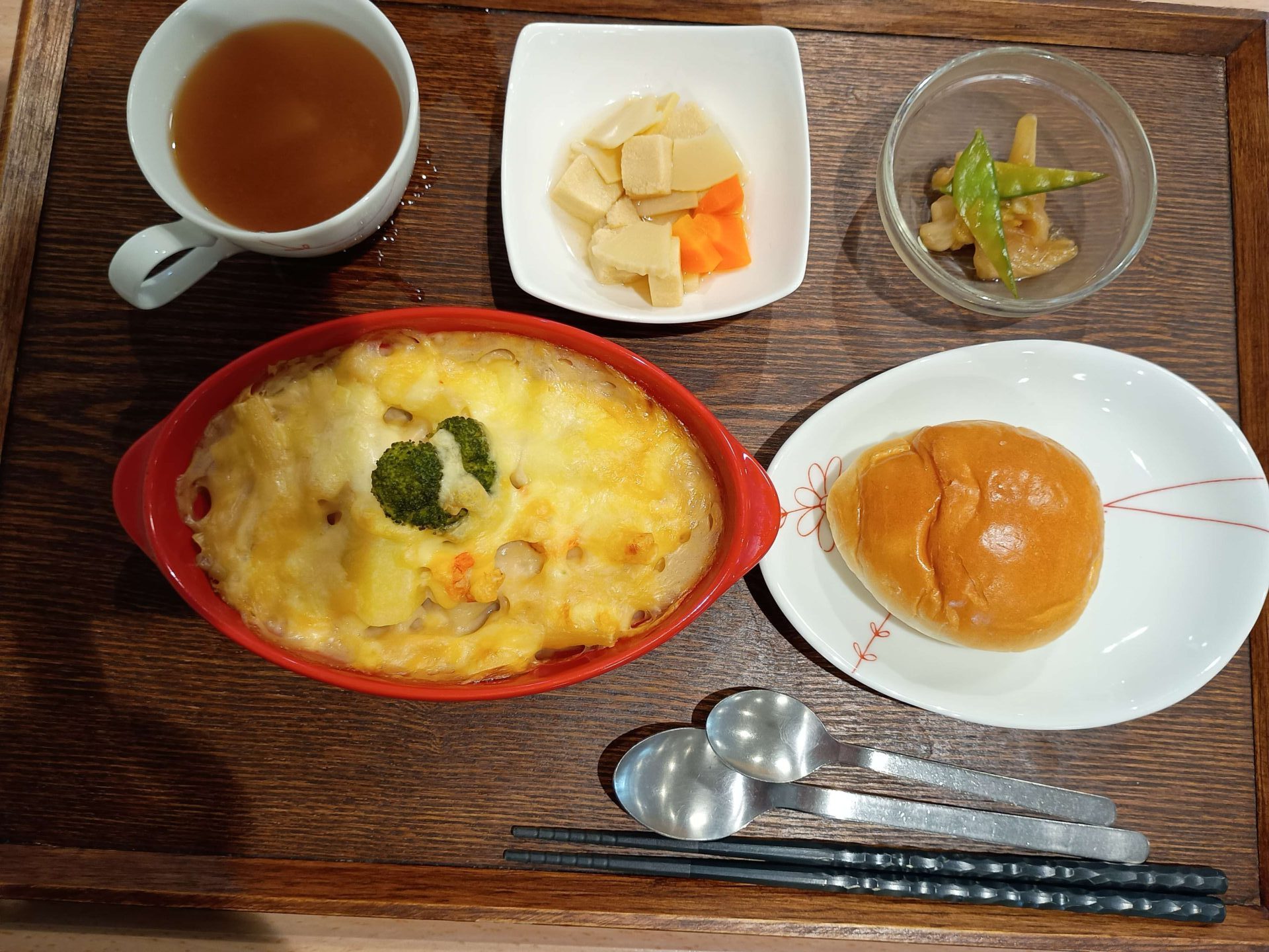 本日のパスタランチは、『えびマカロニグラタン』