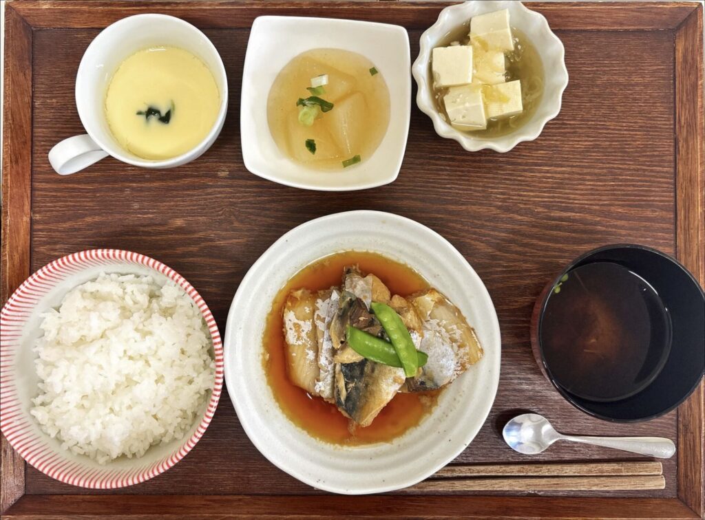 付け合わせは、ごはん・大根のうすくず煮・冷ぬ・味噌汁・茶碗蒸しです。
