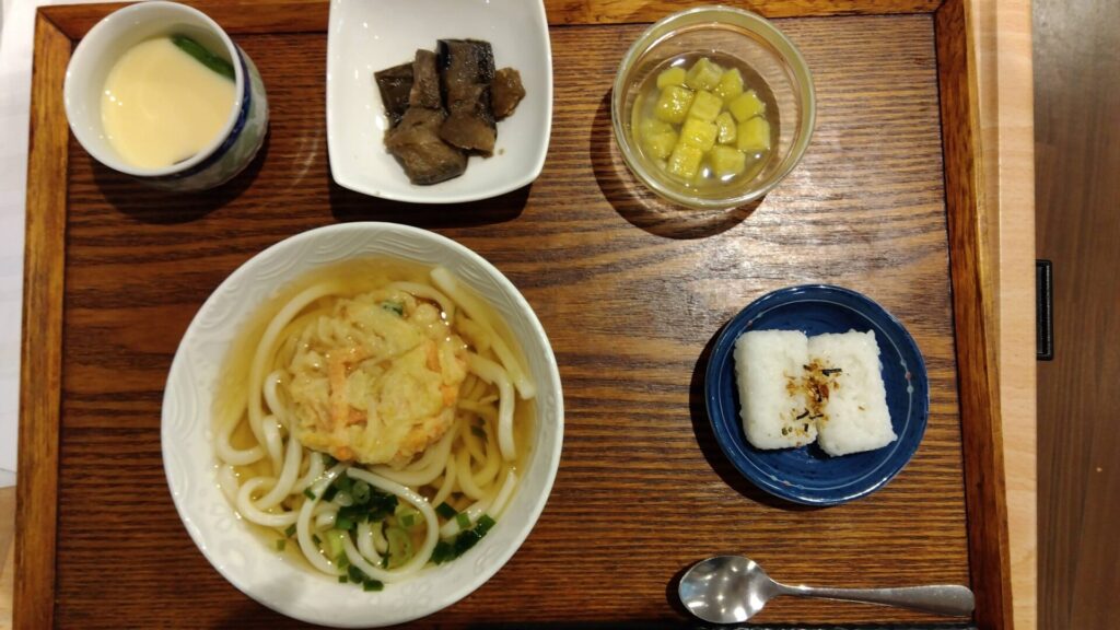 本日の麺定食は、『かき揚げうどん(そばにも変更可能です)』。