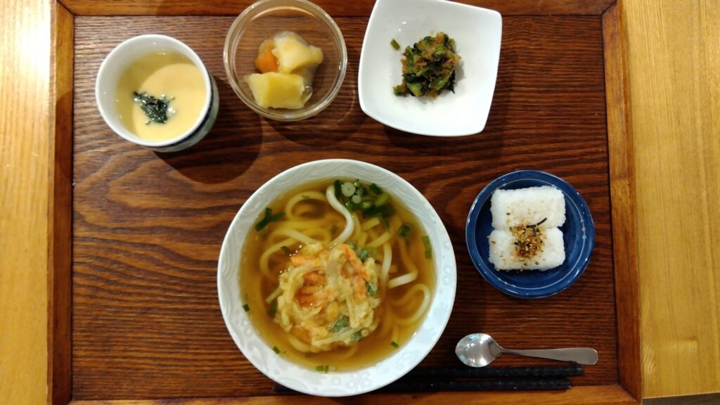 本日の麺定食は、『かき揚げうどん(そばにも変更可能です)』。