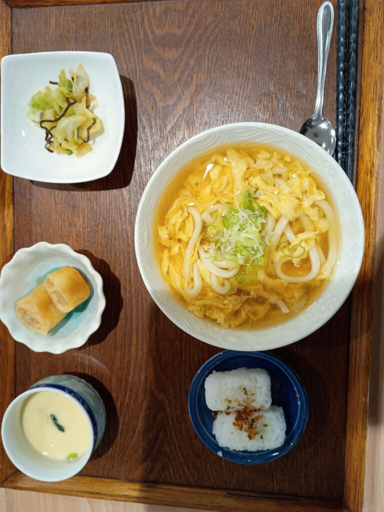 本日の麺定食は、『玉子とじうどん(そばにも変更可能です)』。