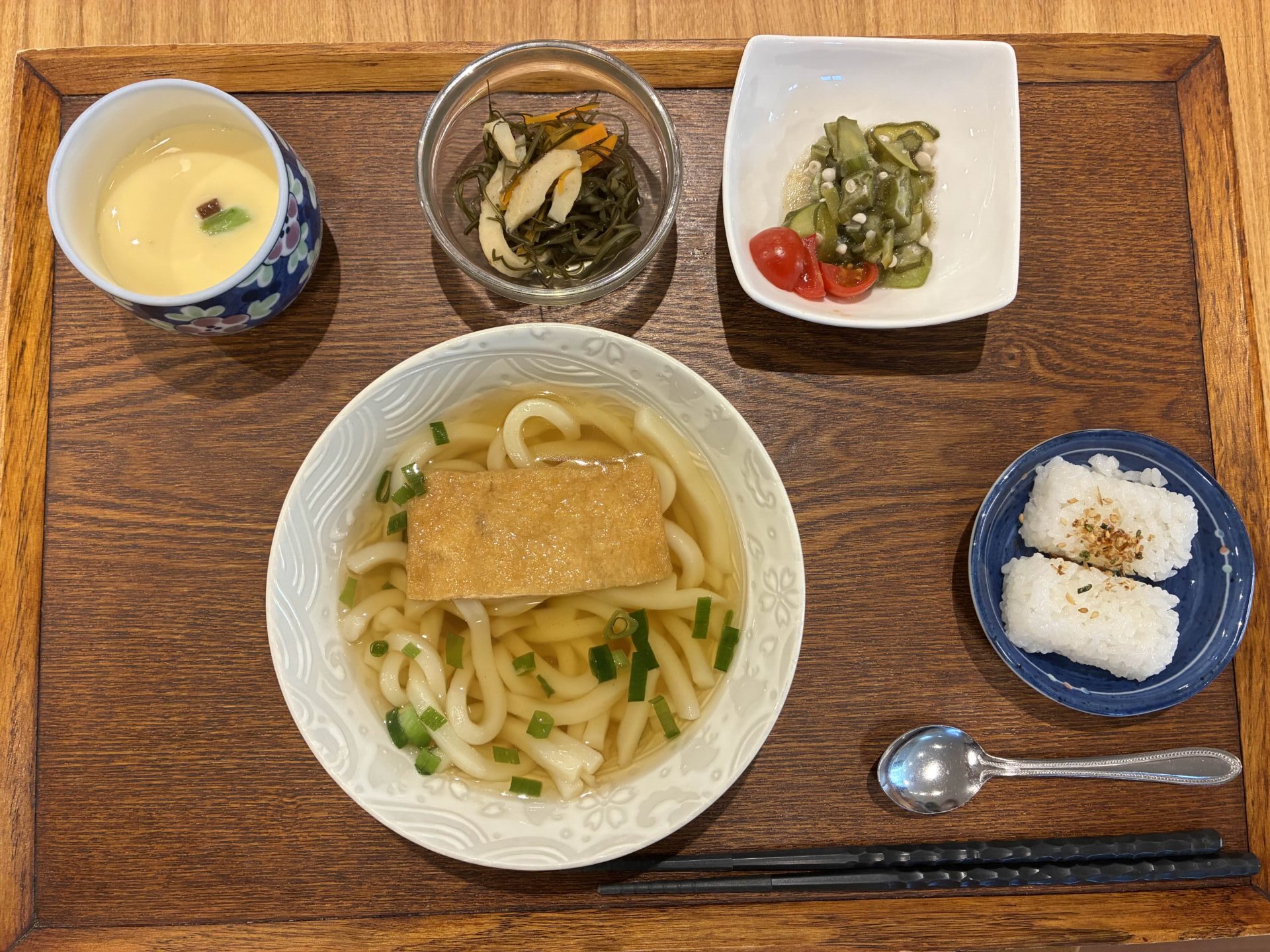本日の麺定食は、『きつねうどん(そばにも変更可能です)』。