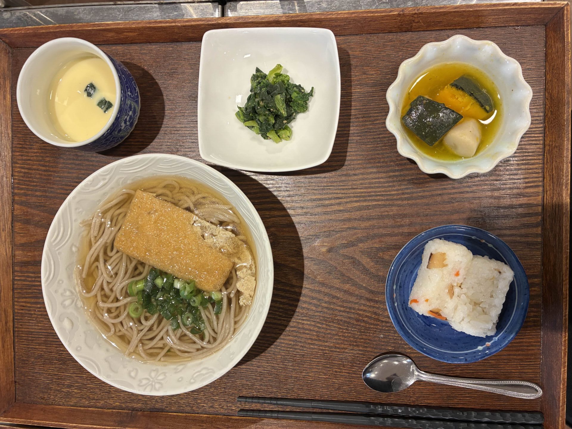 本日の麺定食は、『きつねうどん(そばにも変更可能です)』。