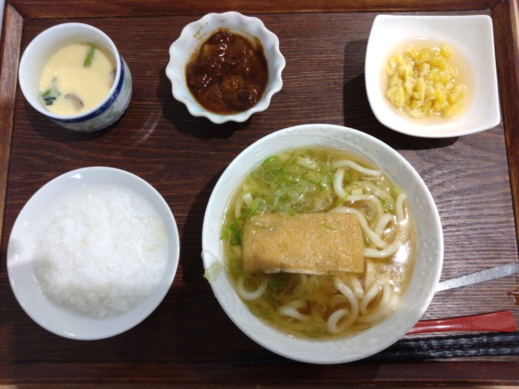 本日の麺定食は、『きつねうどん(そばにも変更可能です)』。