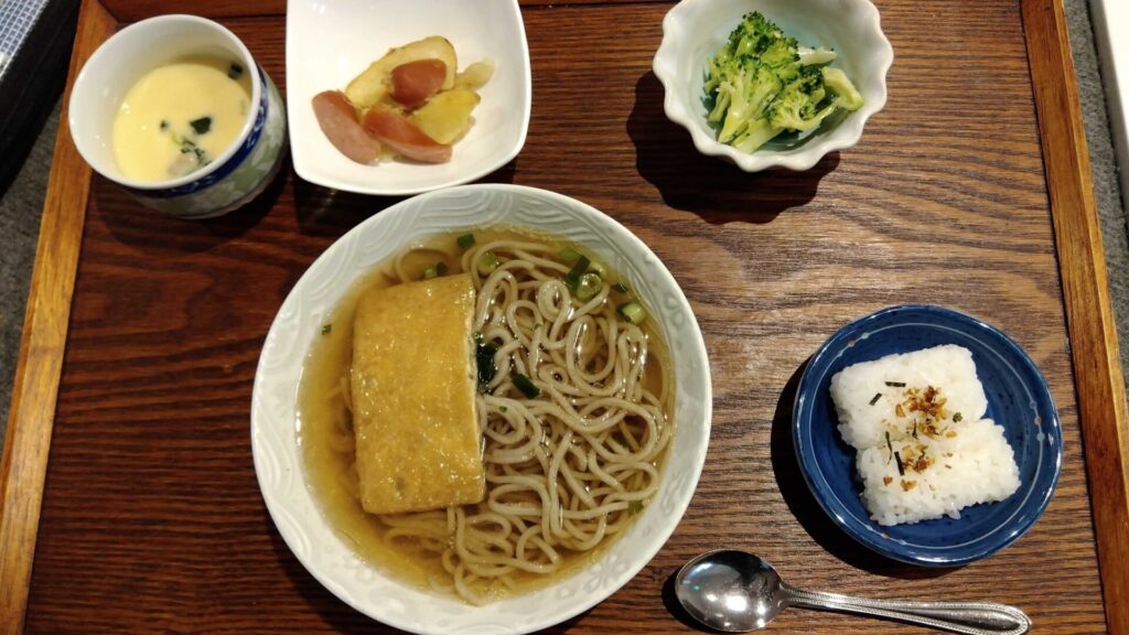 本日の麺定食は、『きつねうどん(そばにも変更可能です)』。