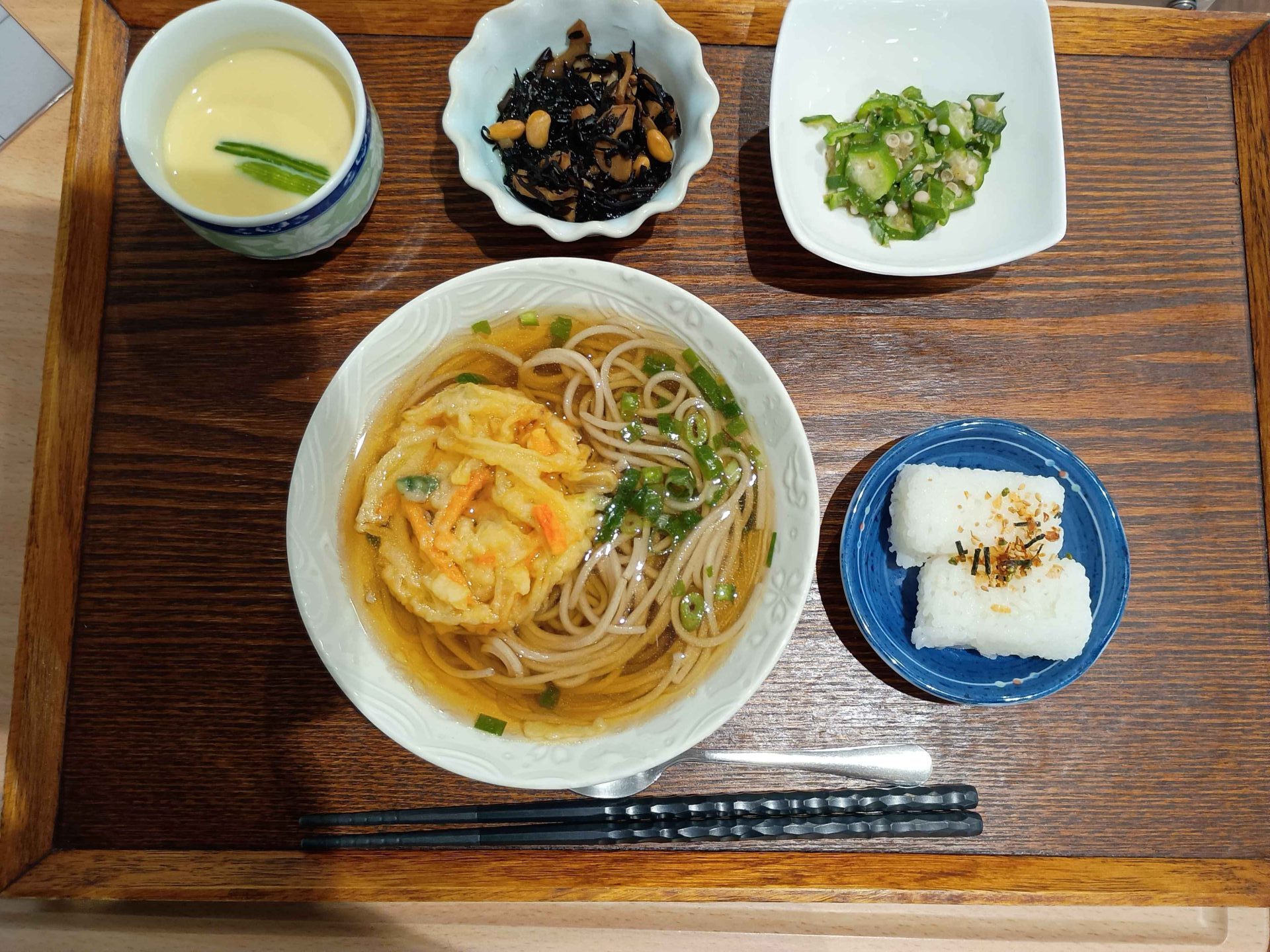 本日の麺定食は、『かき揚げうどん(そばにも変更可能です)』。