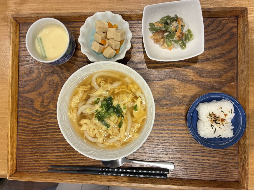 本日の麺定食は、『玉子とじうどん(そばにも変更可能です)』。
