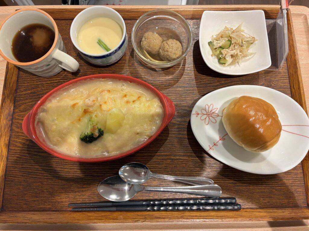 本日のパスタランチは、『えびマカロニグラタン』です。