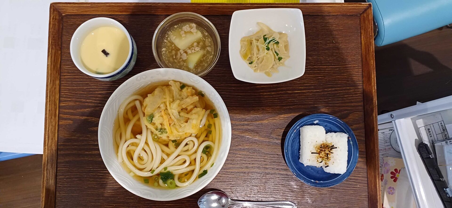 本日の麺定食は、『うどん(そばにも変更可能です)』。