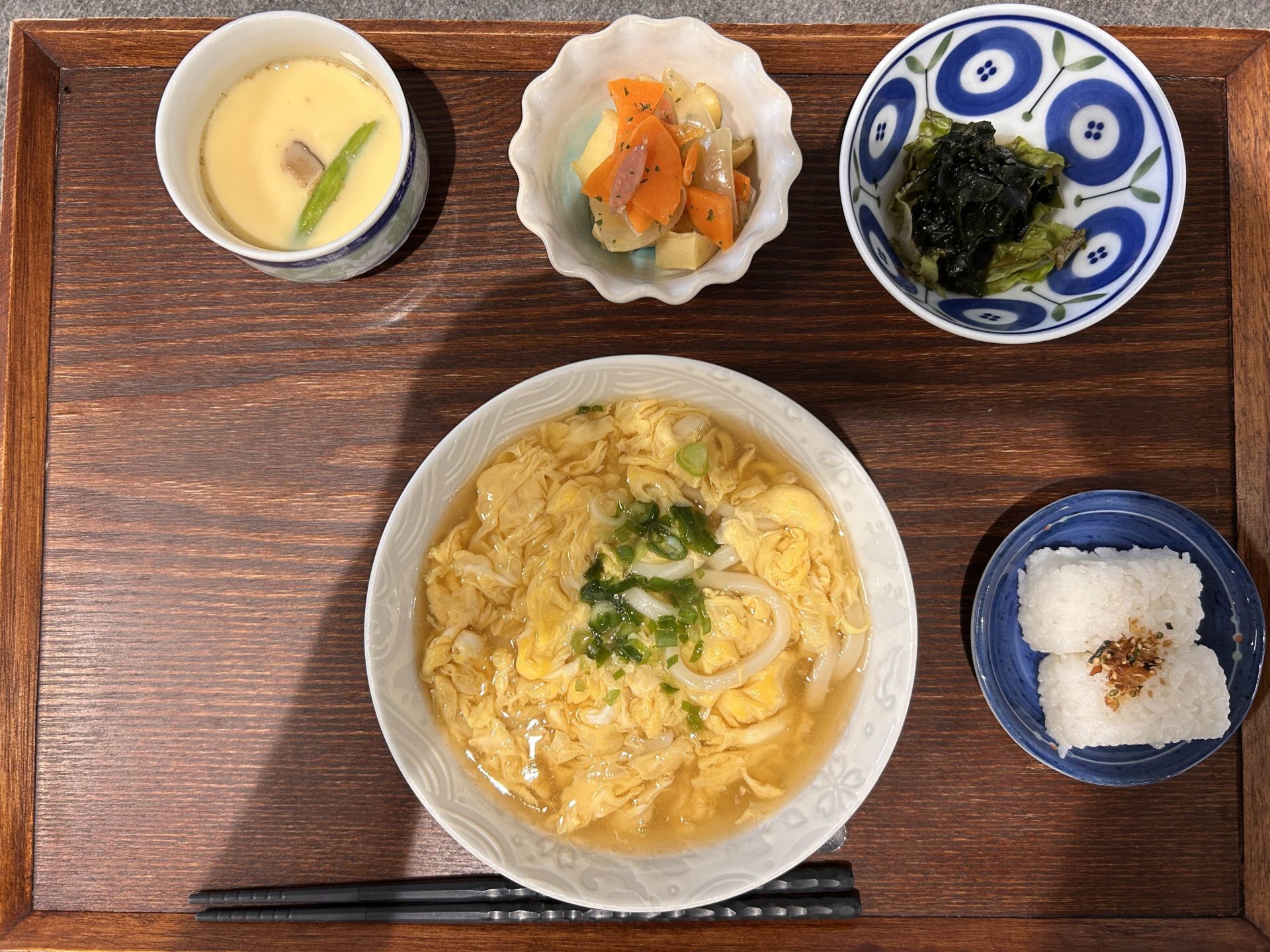 本日の麺定食は、『玉子とじうどん(そばにも変更可能です)』。