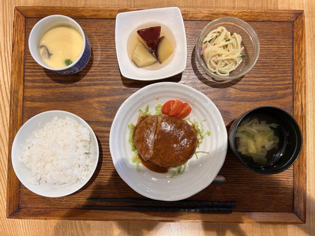 本日の日替わりは、「ハンバーグのブラウンソースかけ」です。