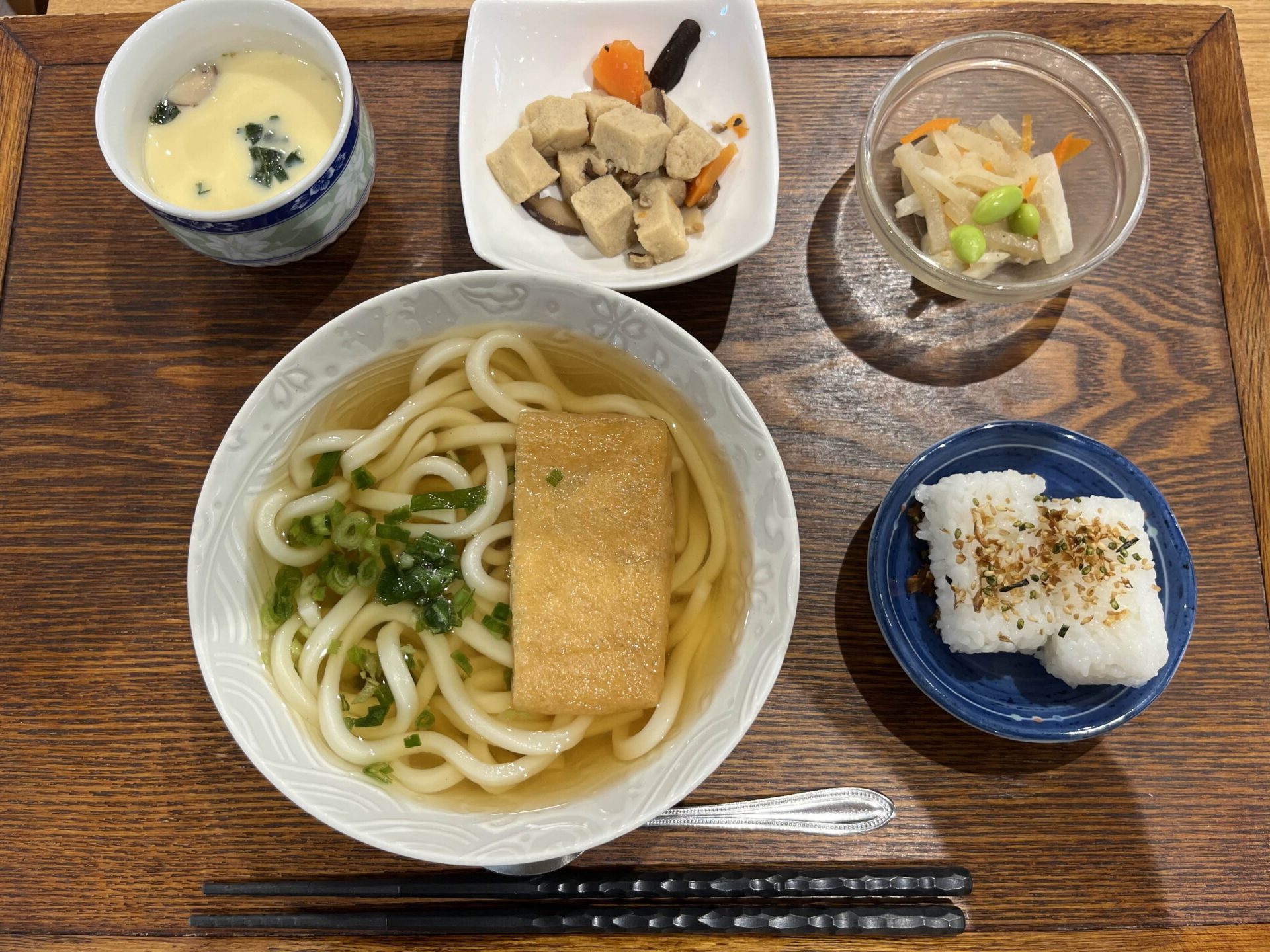 本日の麺定食は、『きつねうどん(そばにも変更可能です)』。
