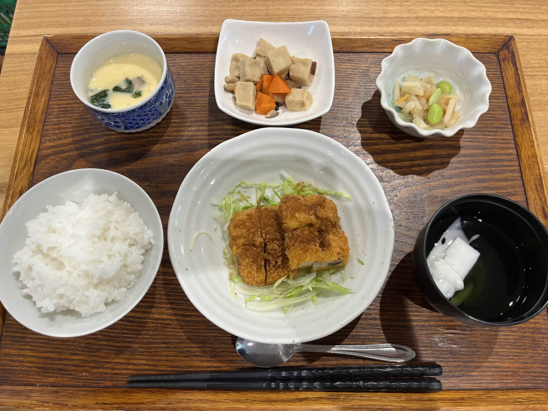 付け合わせは、ごはん・高野豆腐煮・根菜の胡麻だれサラダ・すまし汁・茶碗蒸しです。