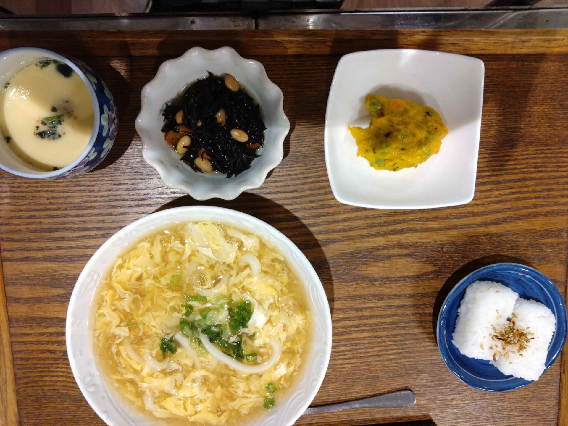 付け合わせは、おにぎり・茶碗蒸しです。
