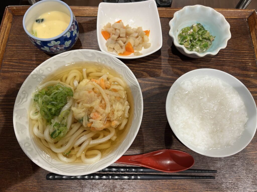 本日の麺定食は、『かき揚げうどん(そばにも変更可能です)』。