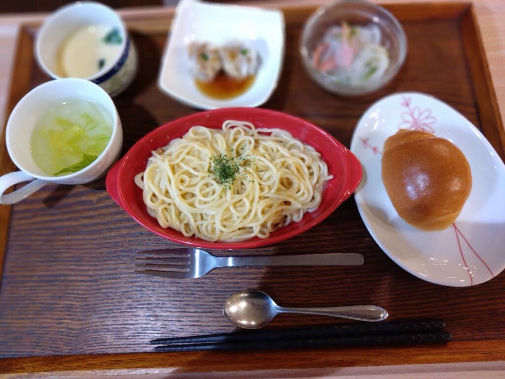 付け合わせ、パン(ごはんにも変更可能です)焼売・春雨の中華和え・中華スープです。