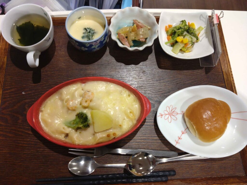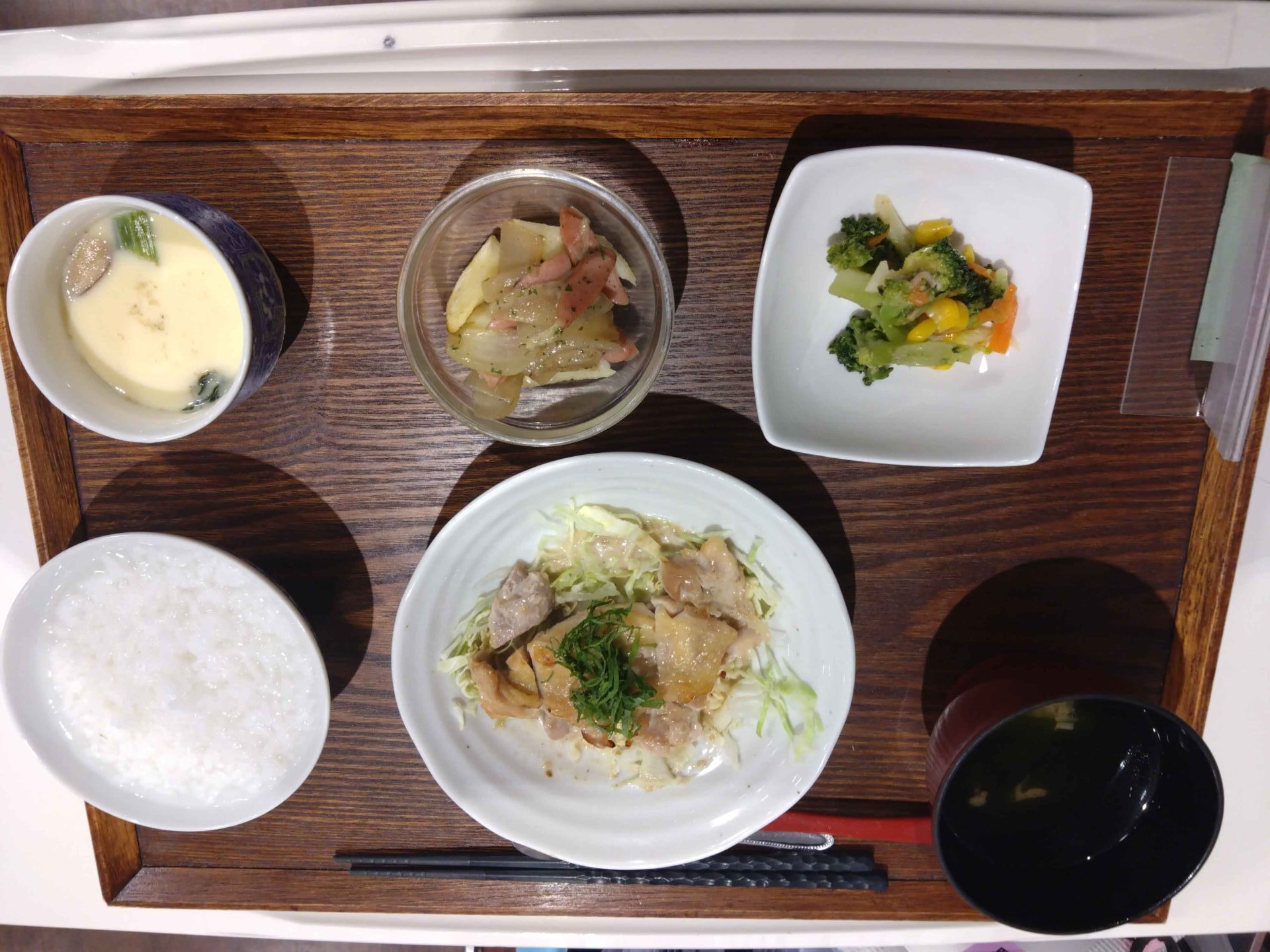 付け合わせは、ごはん・ジャーマンポテト・ブロッコリーのDeli風サラダ・コンソメスープ・茶碗蒸しです。