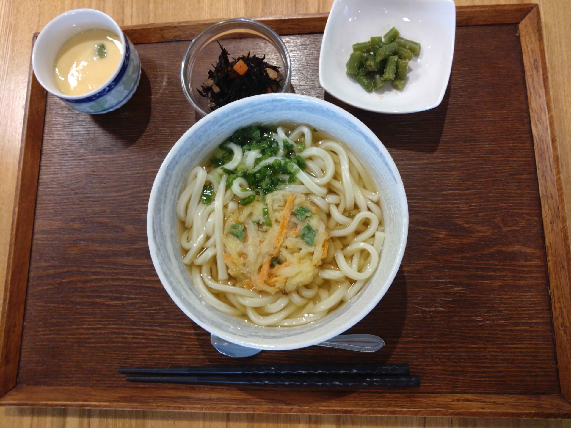 本日の麺定食は、『かき揚げうどん(そばにも変更可能です)』。