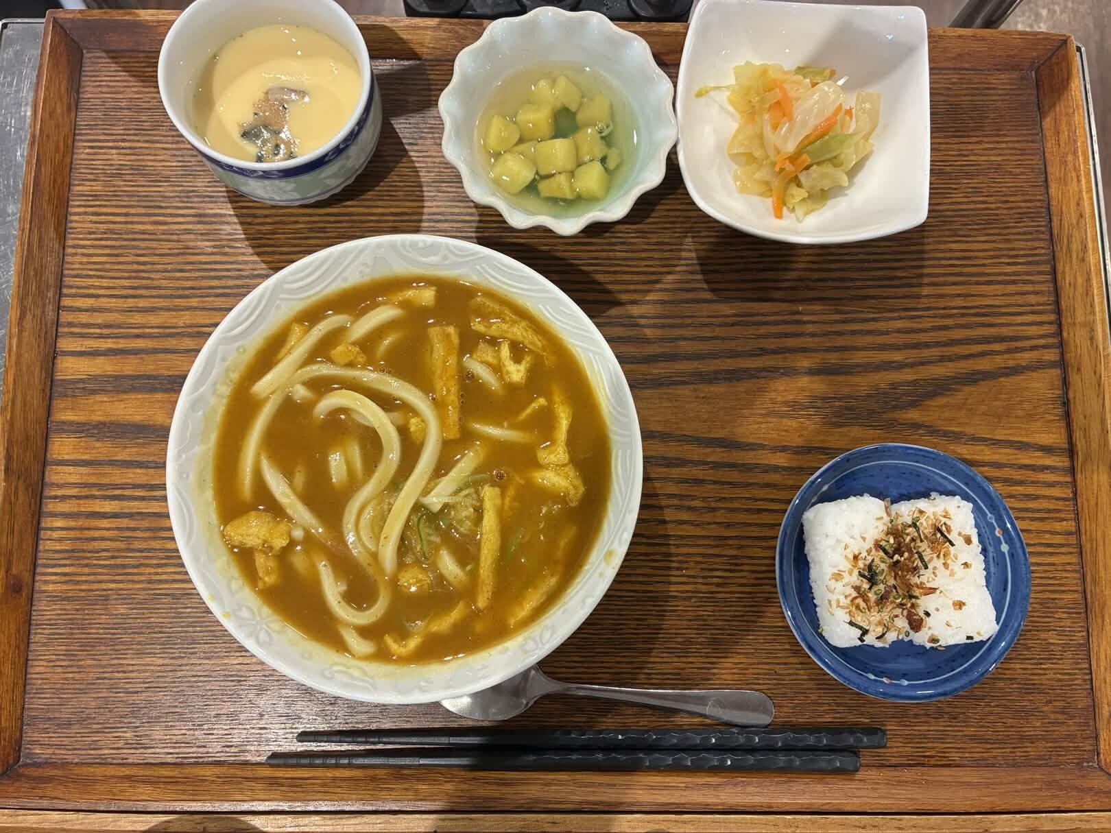本日の麺定食は、『カレーうどん(そばにも変更可能です)』。