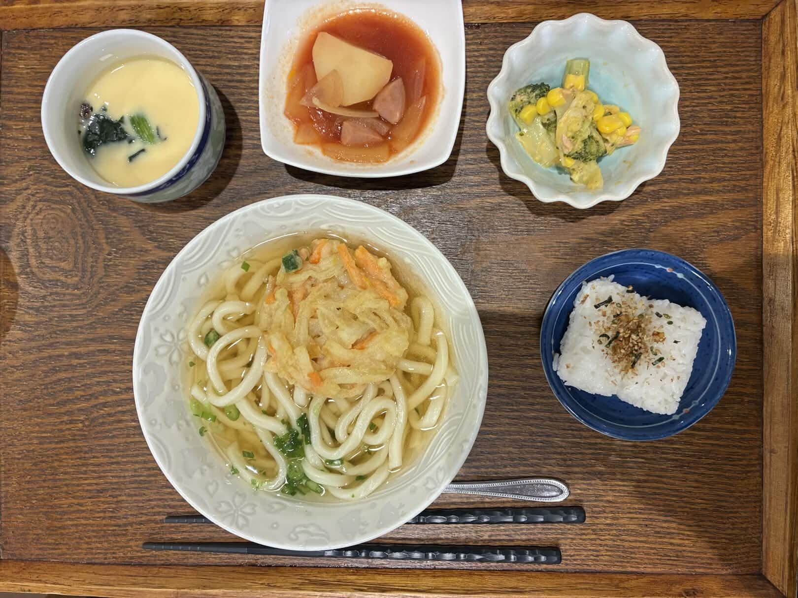 本日の麺定食は、『かき揚げうどん(そばにも変更可能です)』。
