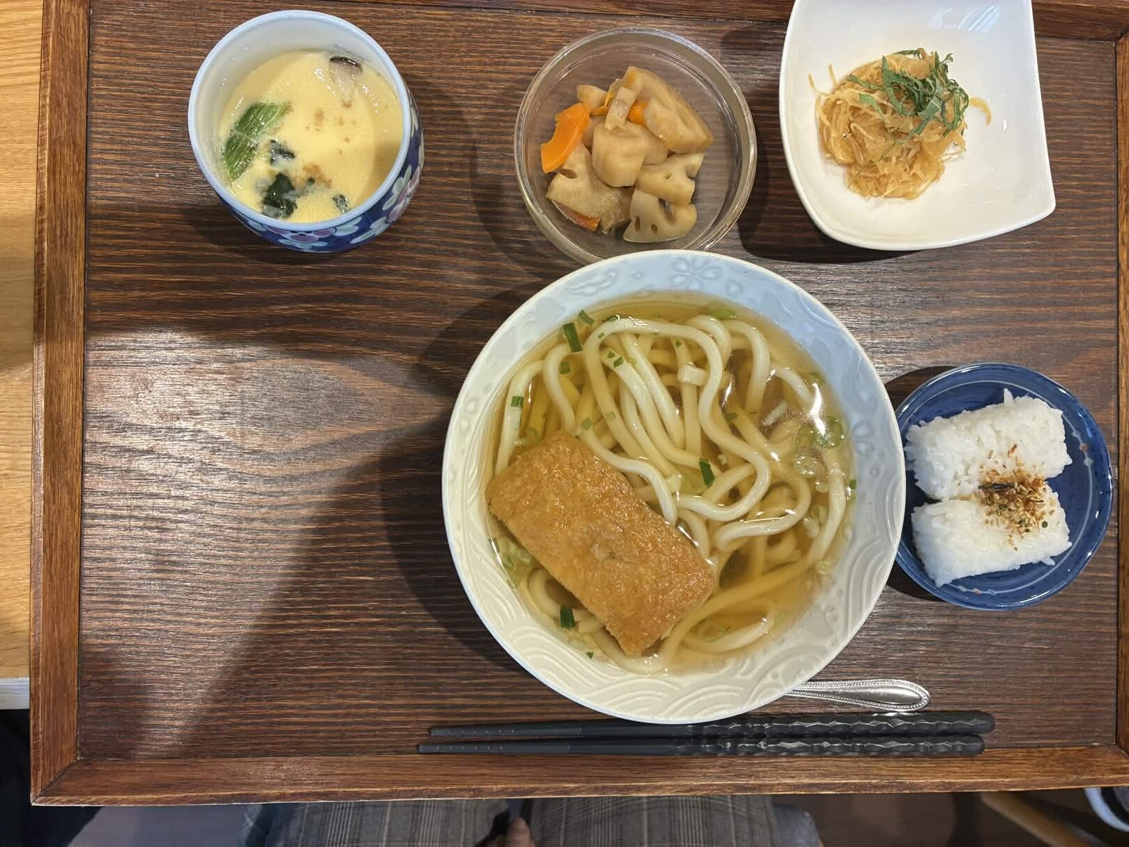 本日の麺定食は、『きつねうどん(そばにも変更可能です)』。
