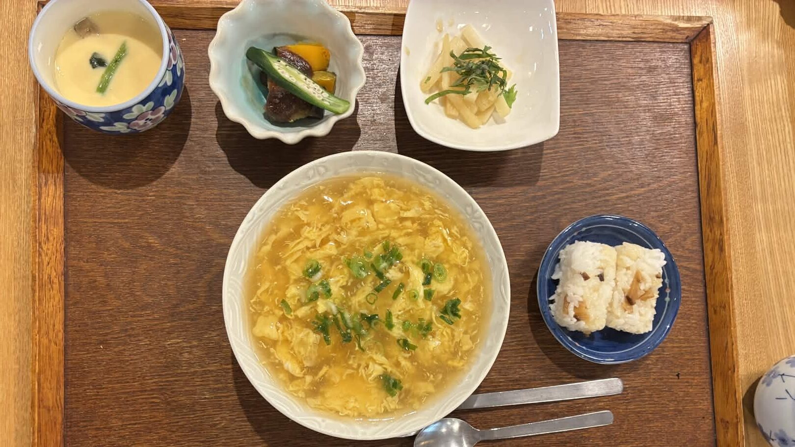 本日の麺定食は、『玉子とじうどん(そばにも変更可能です)』。