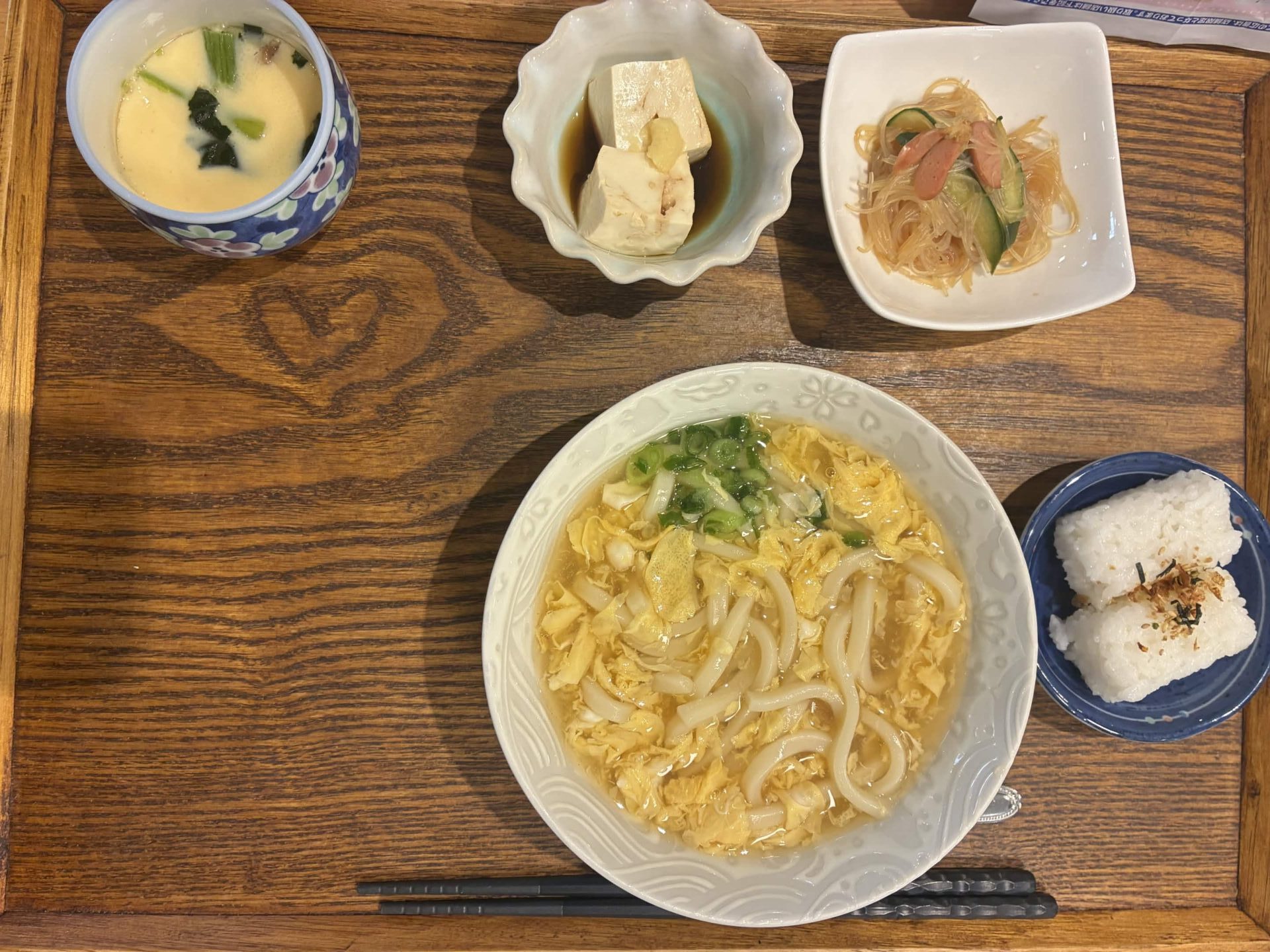 本日の麺定食は、『玉子とじうどん(そばにも変更可能です)』。